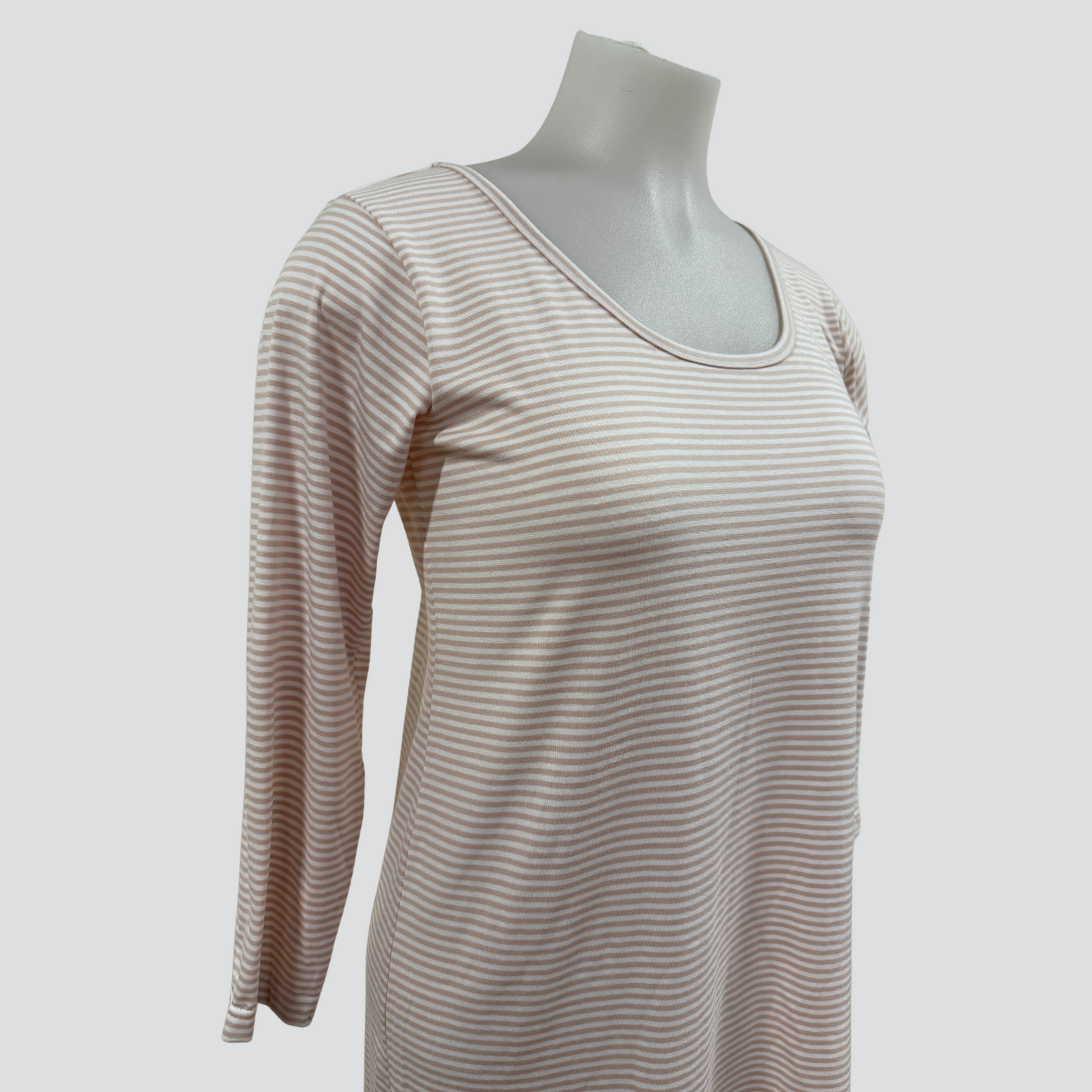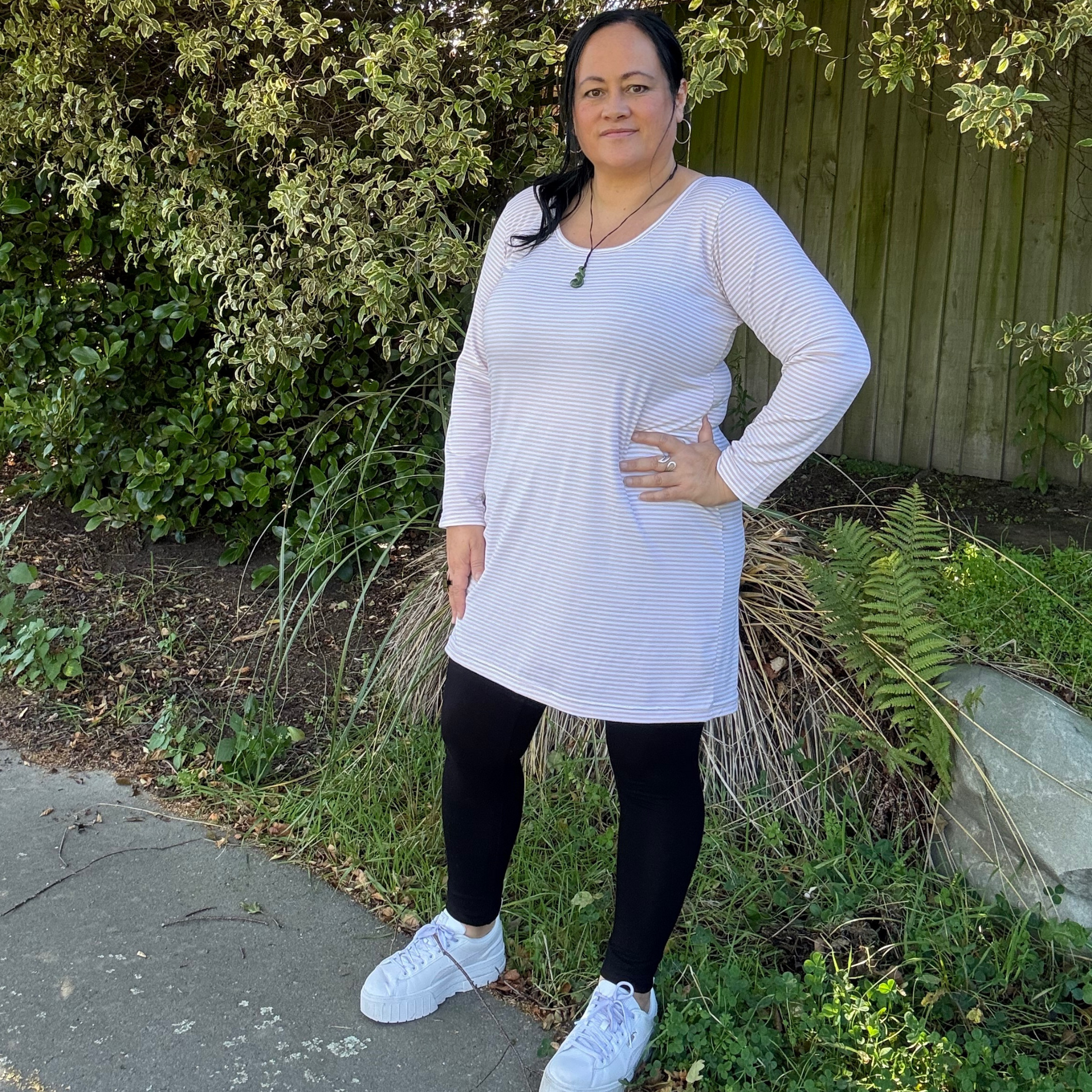 This one will add a bit of lightness to your wardrobe! The Ana Base is the perfect layering essential soft, lightweight, and ready to wear under your tunics, coats, and dresses. The subtle stripe adds just the right amount of colour to a dark wardrobe. An everyday staple you’ll keep coming back to.