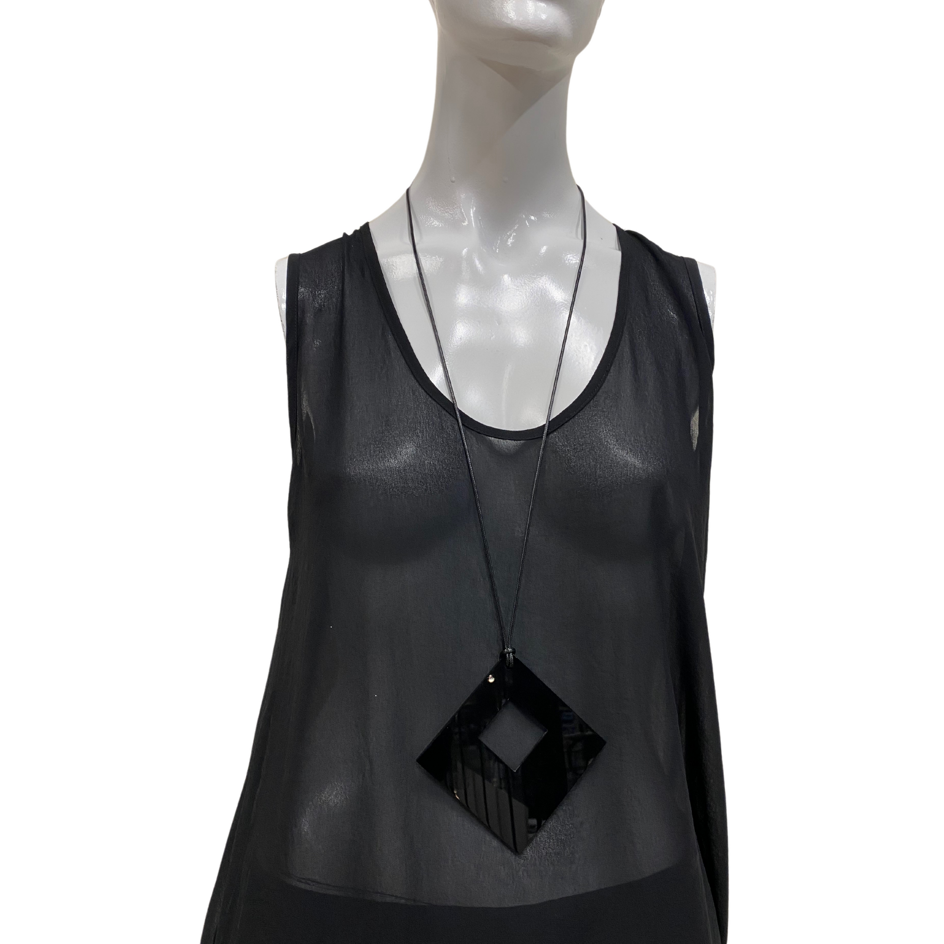 Introducing our Diamond-Shaped Acrylic Statement Necklace. The clean lines and geometric design of this statement piece make it a versatile accessory that can effortlessly elevate any outfit. Make a bold fashion statement with this eye-catching necklace. Embrace the beauty of simplicity of this collection.