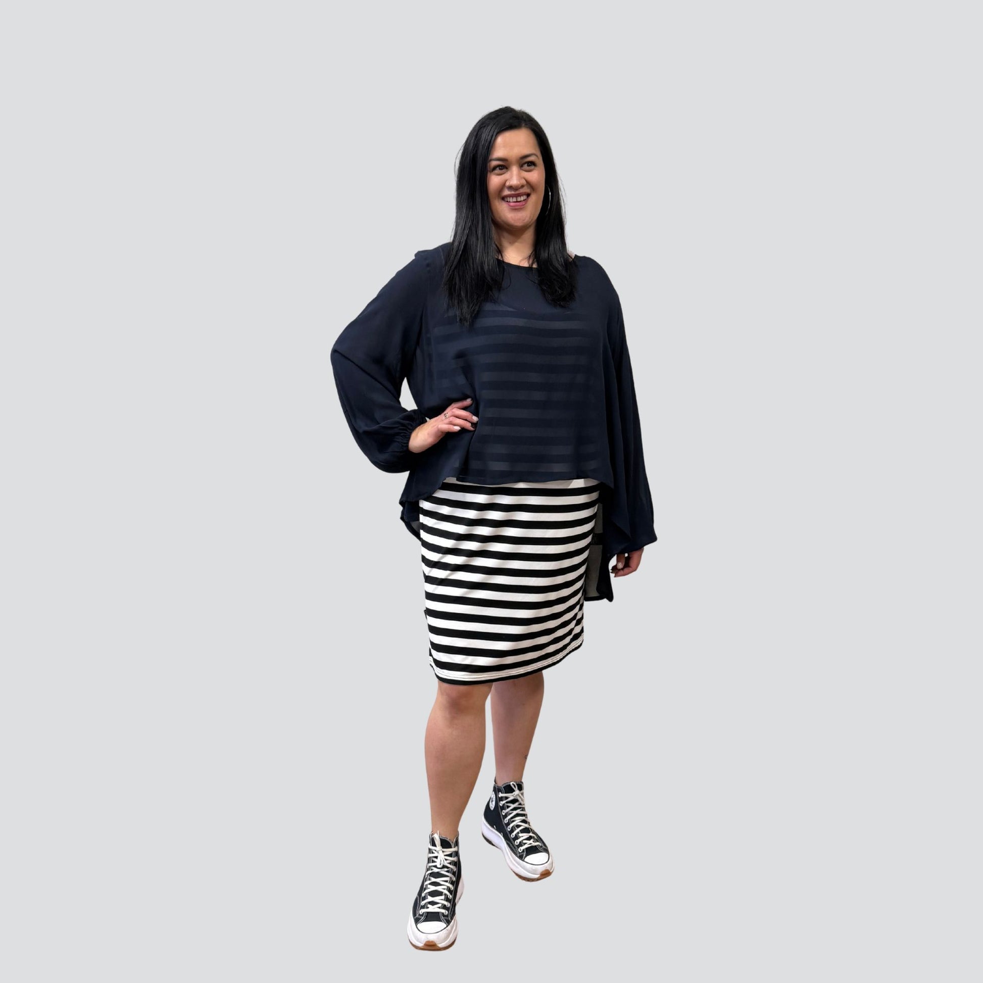 Say hello to your newest wardrobe essential. The Navy Iva top by Valpy is made right here in New Zealand. Lightweight, easy to wear & 100% viscose. High low style with a puff sleeve with elastic at the cuff