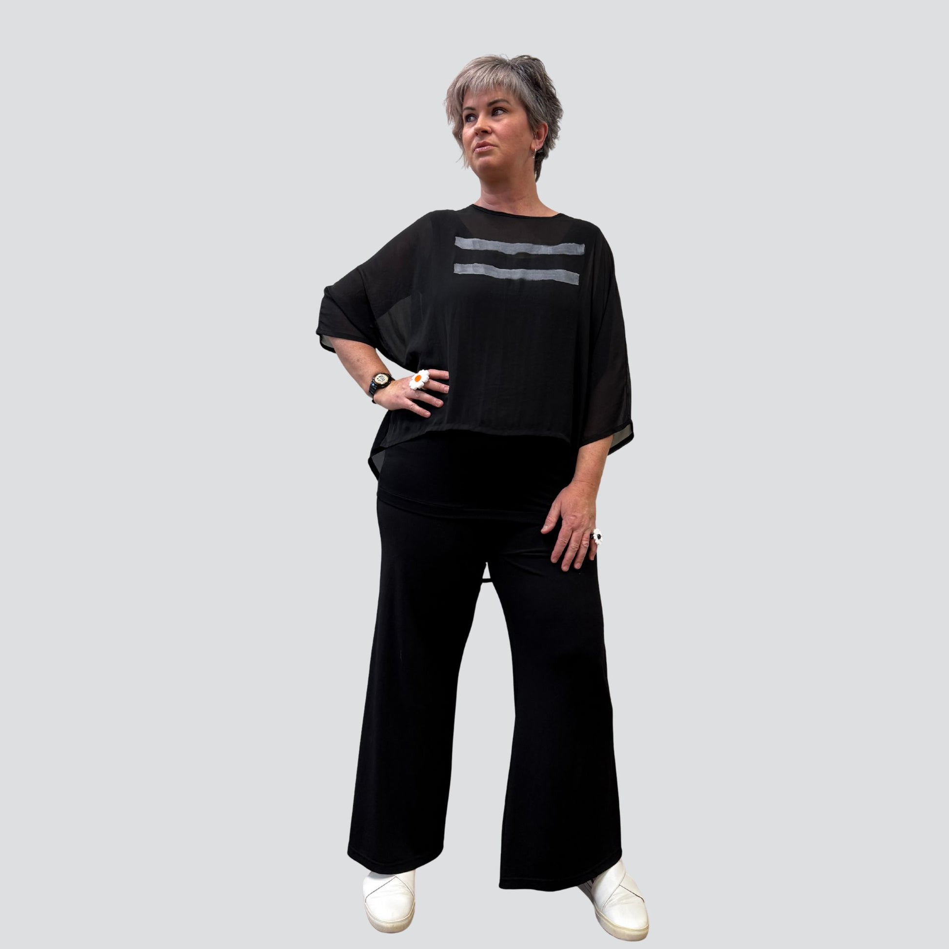 The Esther Equals has arrived, this one provides effortless style. The Esther is designed to layer beautifully over all your singlet and tank basics, adding a touch of handcrafted charm to your outfits. Featuring a hand painted line print that celebrates the beauty of being perfectly imperfect!