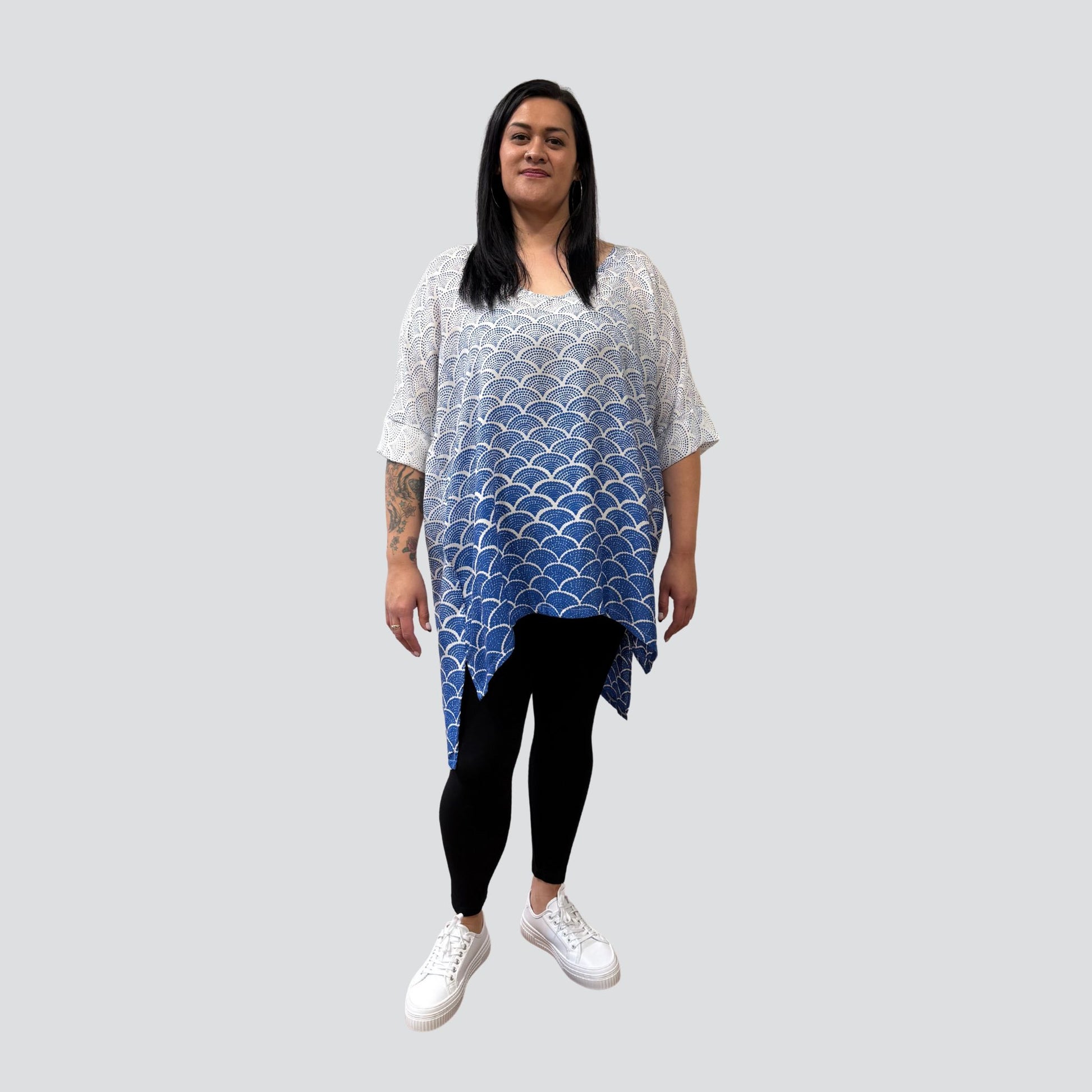 Timeless style with the Silk Gracie Dress, 100% silk. This piece has a white and blue print, making it perfect for both day to evening occasions.