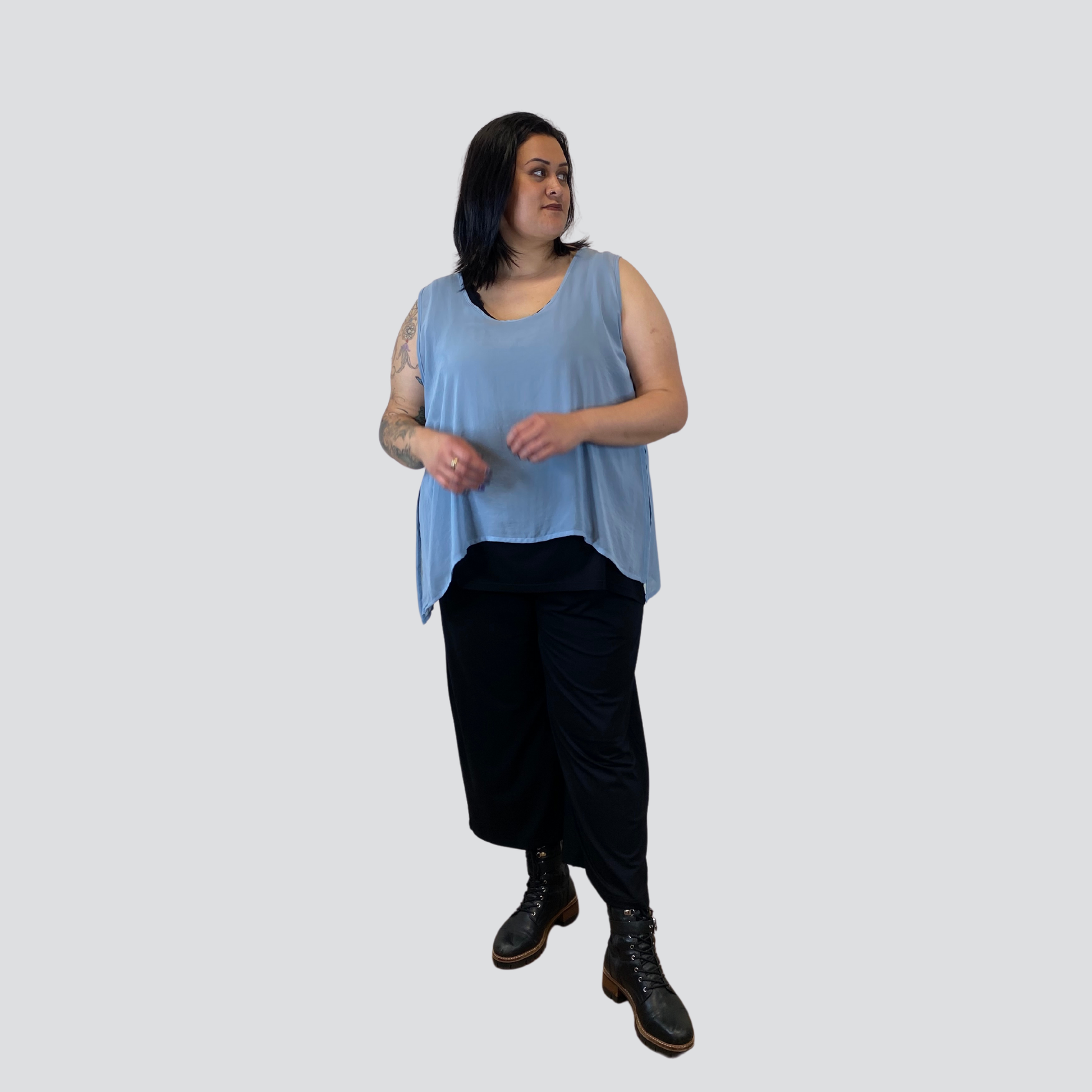 Add a touch of soft colour to your everyday look with this light blue cami a perfect match for your favourite layering pieces all year round. Designed for women with curves it drapes beautifully over the midsection giving a smooth line without any cling.