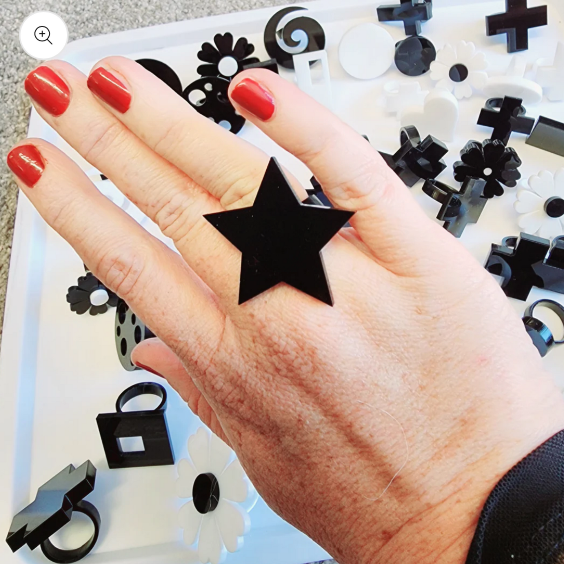 These gorgeous acrylic rings come in different shapes to suit your individual style. See rings by the tape measure for true size.