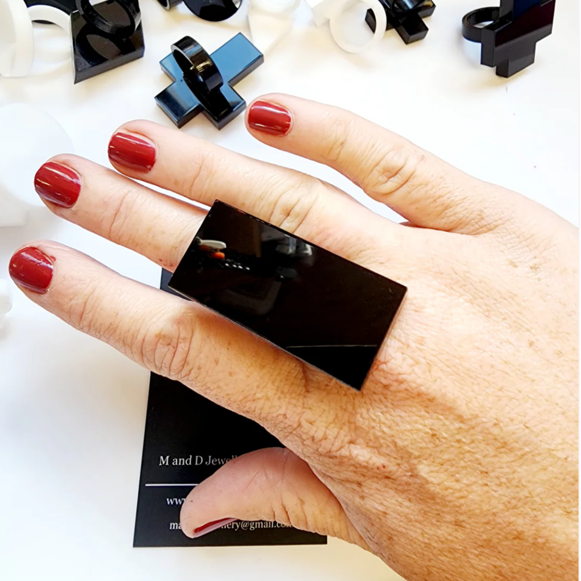 Large black rings. Edgy statement fashion jewellery now online at Key Black. Level up your look with the small and large statement rings by M&D. New Zealand made.