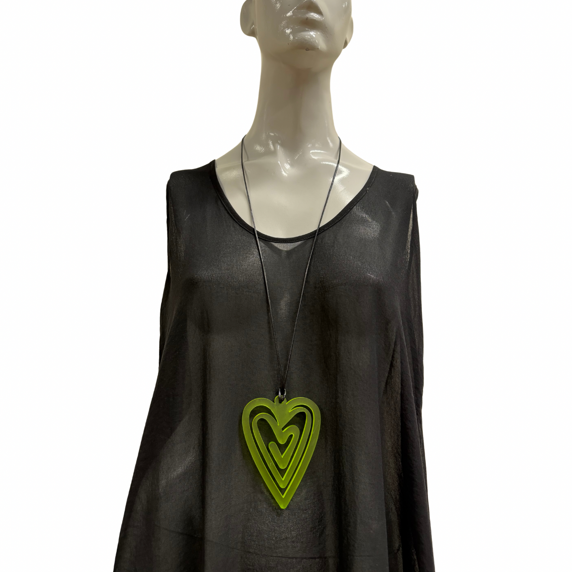 Show your love for bold design with the Green Heart Spiral Necklace, large heart shape with a spiral cut out at its centre. Made in Christchurch, New Zealand from vibrant green acrylic, it’s lightweight, and easy to style or add colour with any look.