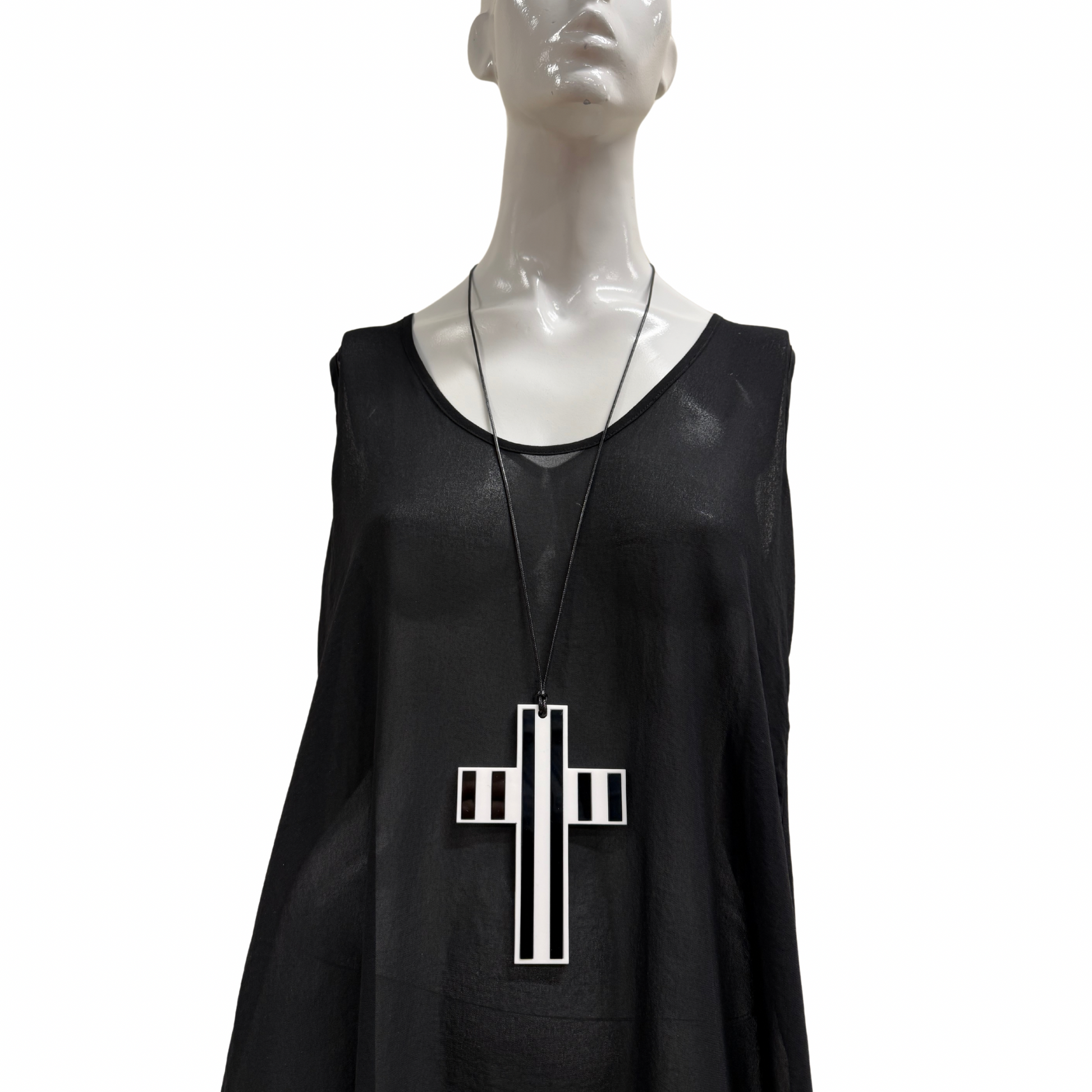 White with Black Stripe Cross Necklace – NZ Made Bold Acrylic Jewellery